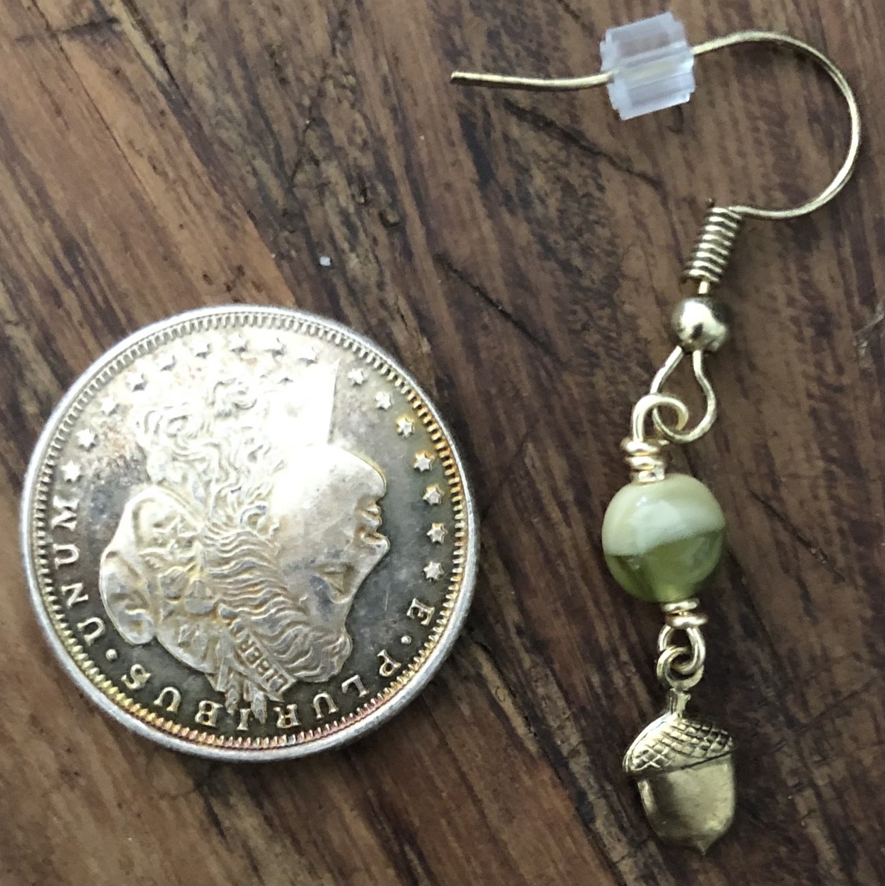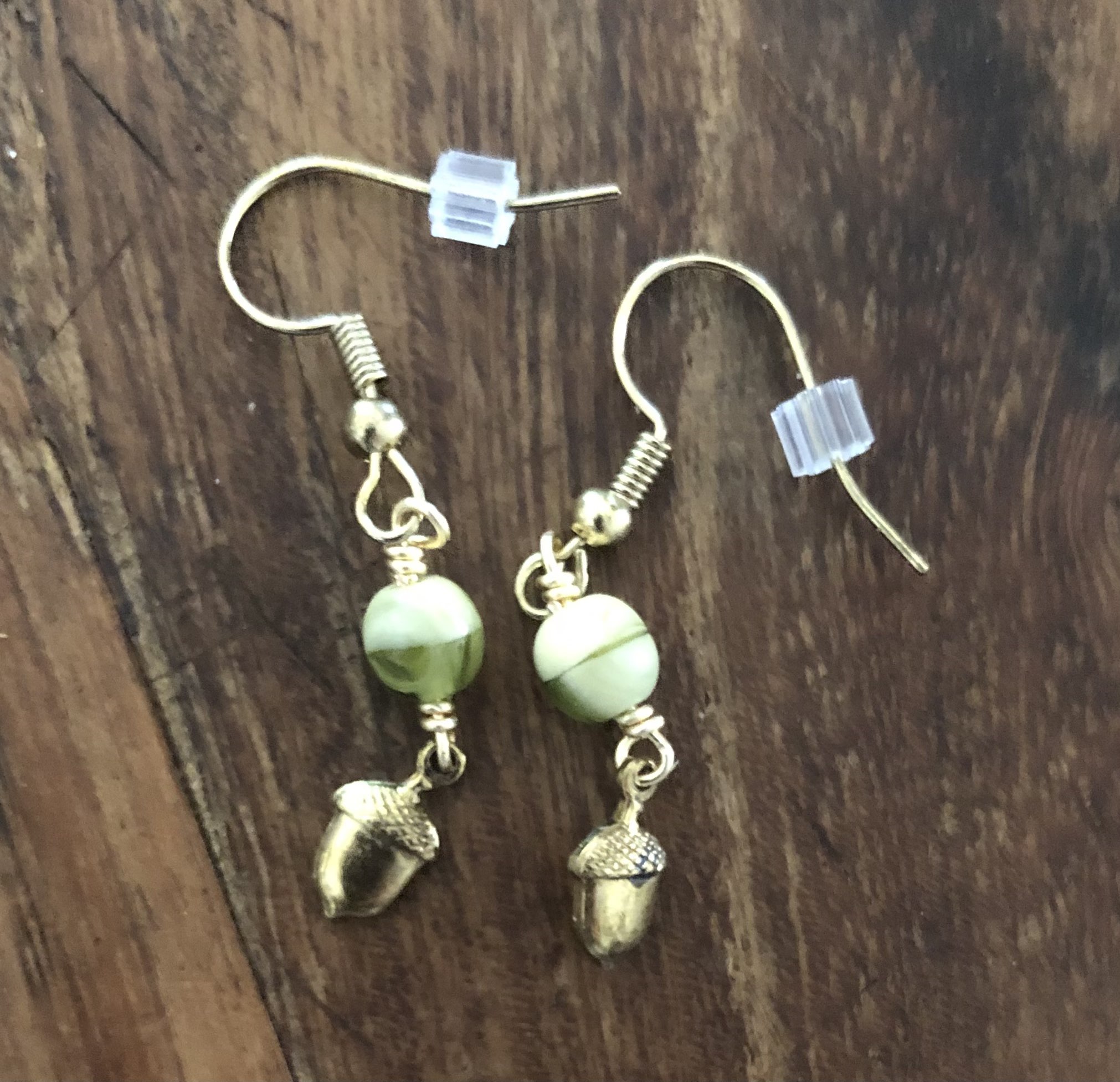 These little acorn charms came from the same bag as the other gold colored vintage autumn themed charms. This was fun to make more tiny acorn earrings.