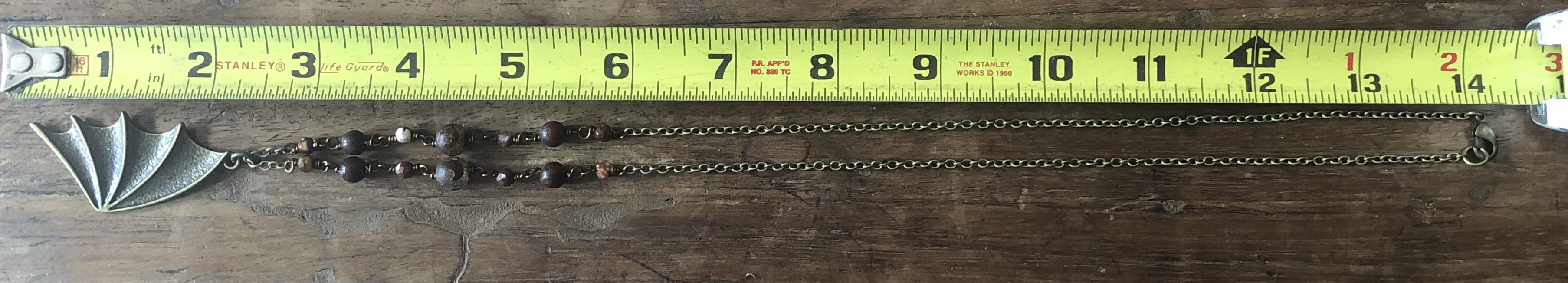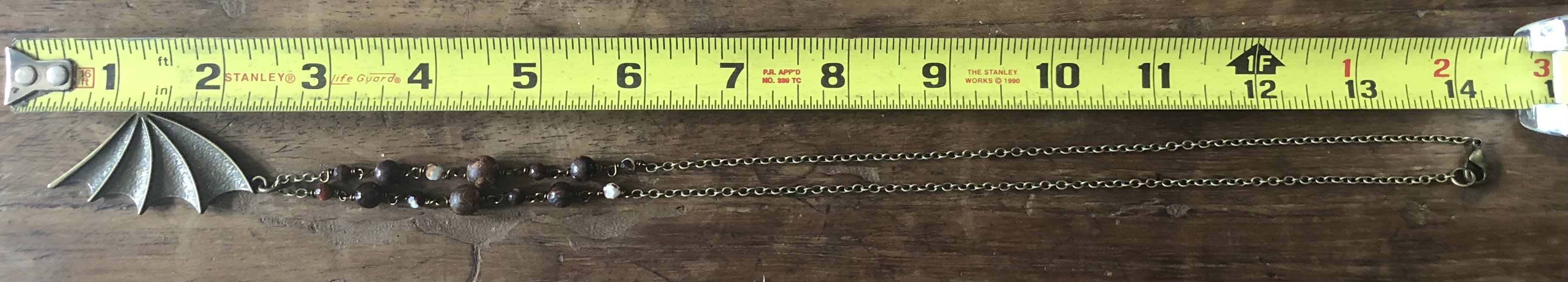 The wing necklace on the right is made with small faceted stone beads and agate beads like the left bat wing necklace except I used red tigers eye for this necklace.