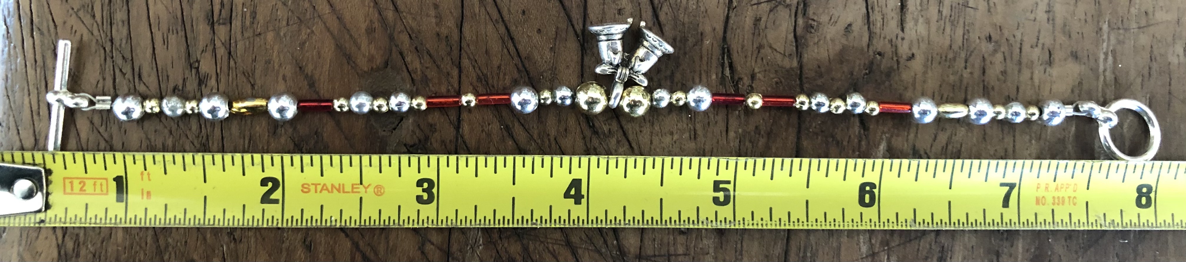 Some years ago I made a variety of Bracelet earring Christmas themed jewelry sets. This one is themed after ringing bells. I went more with the colors of red, gold, and silver to bring out the festive theme.