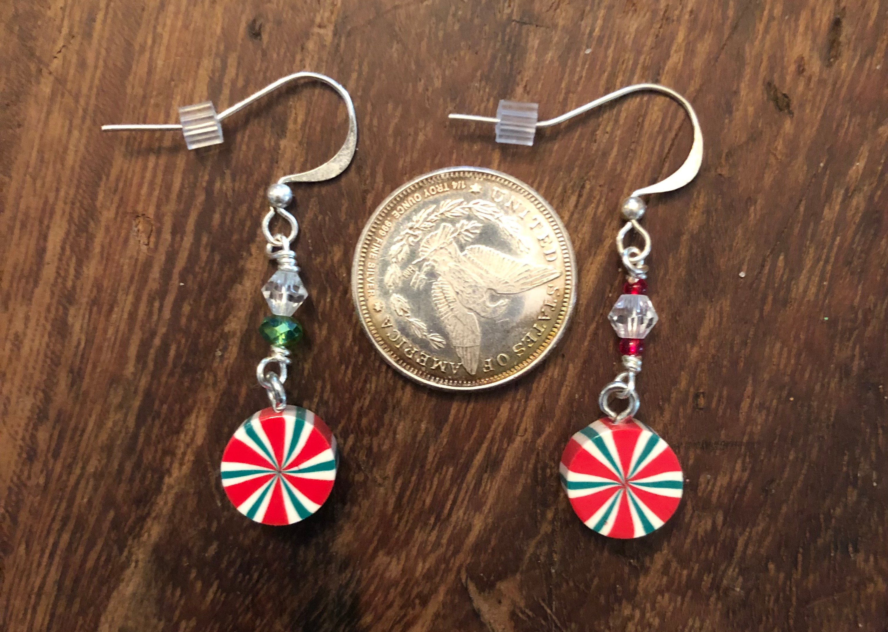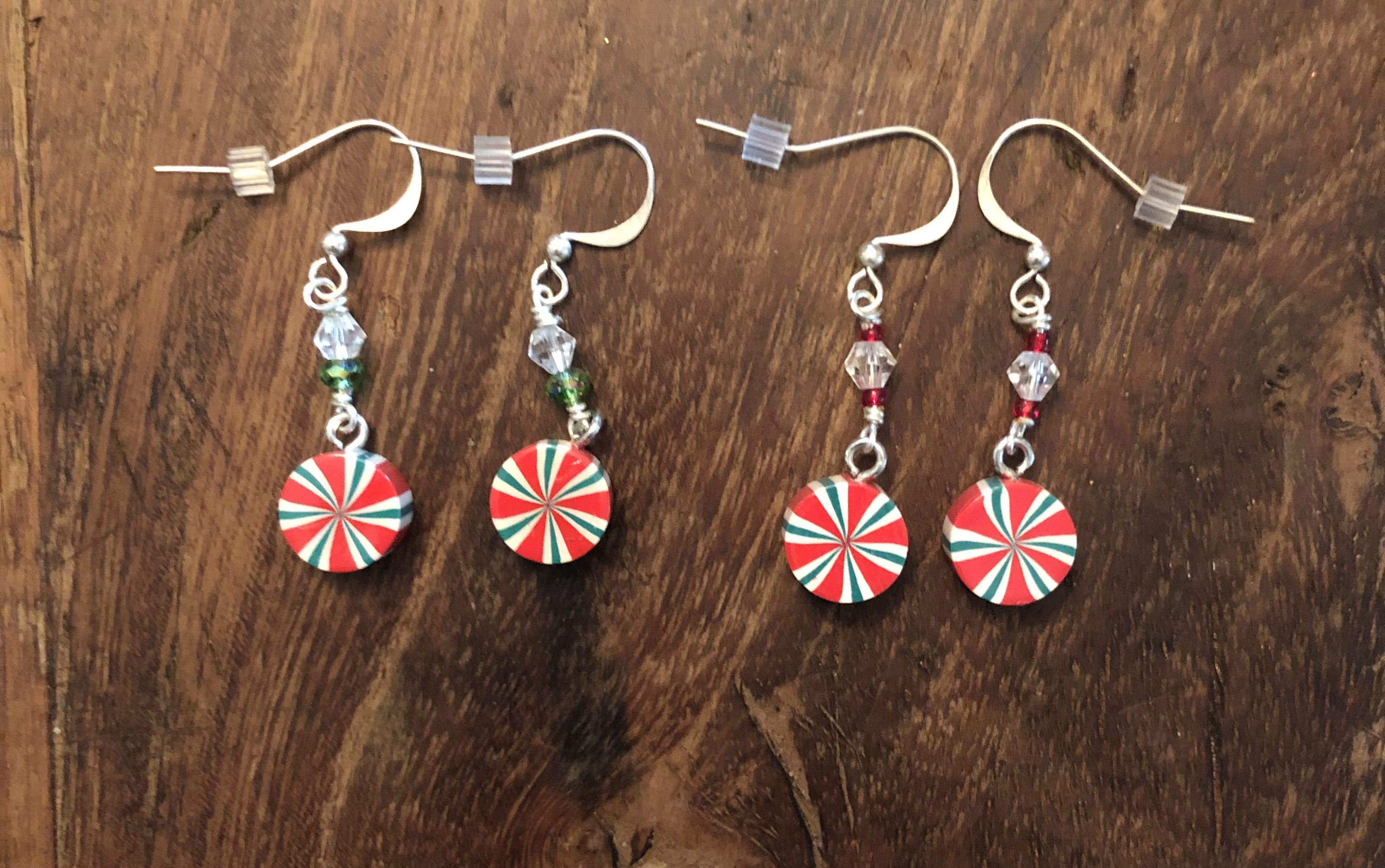 Simple peppermint earrings with clear beads complimented with either red or green beads.