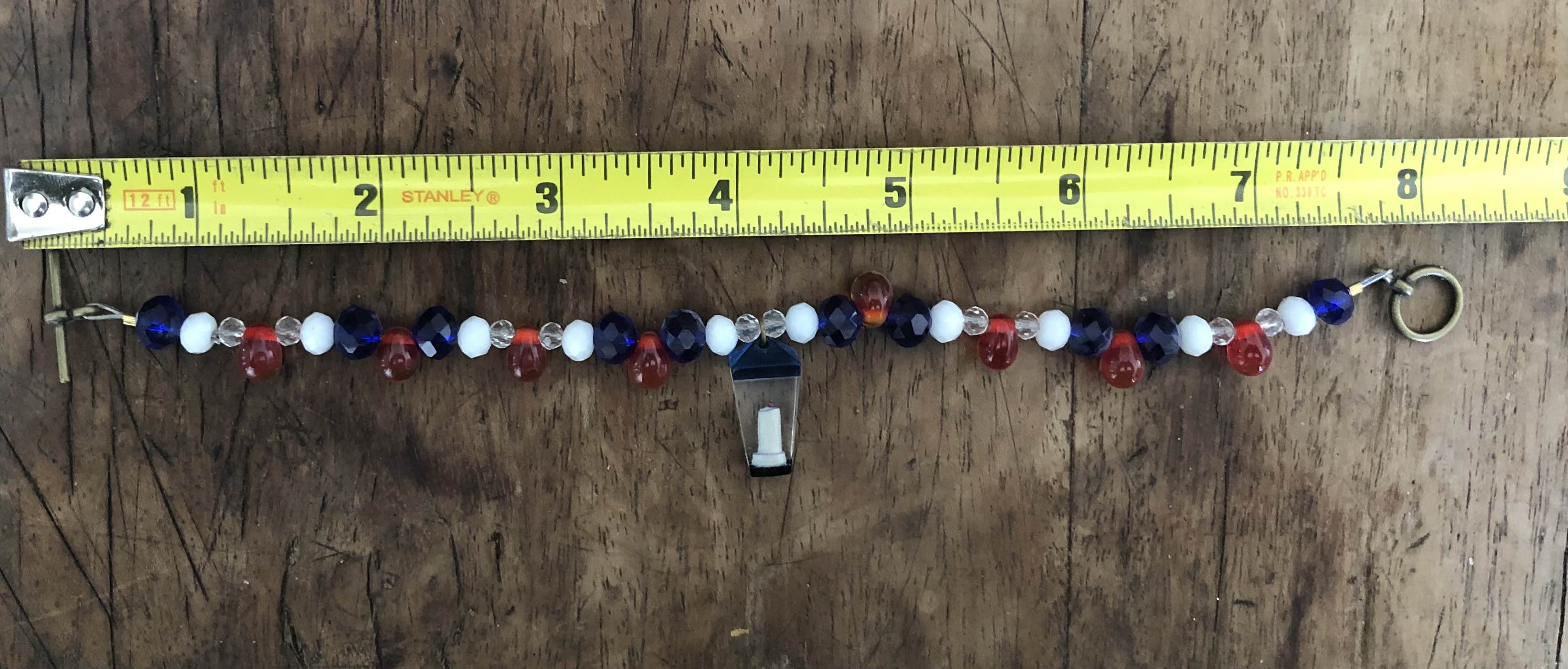 This bracelet is themed around the little blue lantern charm I got from a vintage grab bag. I used translucent, blue, white, and red mixed with yellow glass beads when making this bracelet. I named it after the Christmas song Silent Night because that is just what this piece reminds me of.