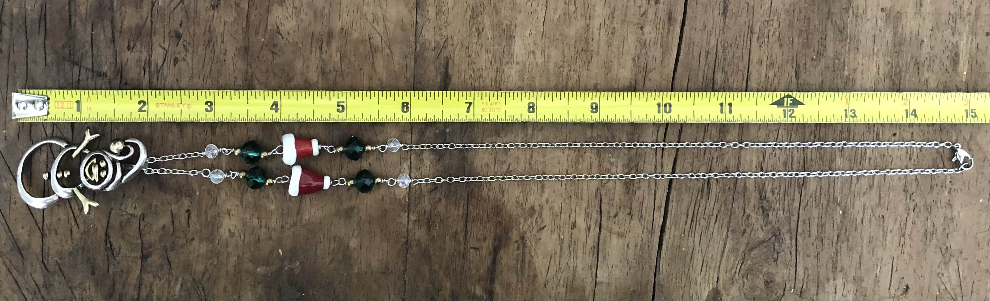 I used small clear faceted glass beads, green faceted glass beads, and hand blown glass santa hat beads.