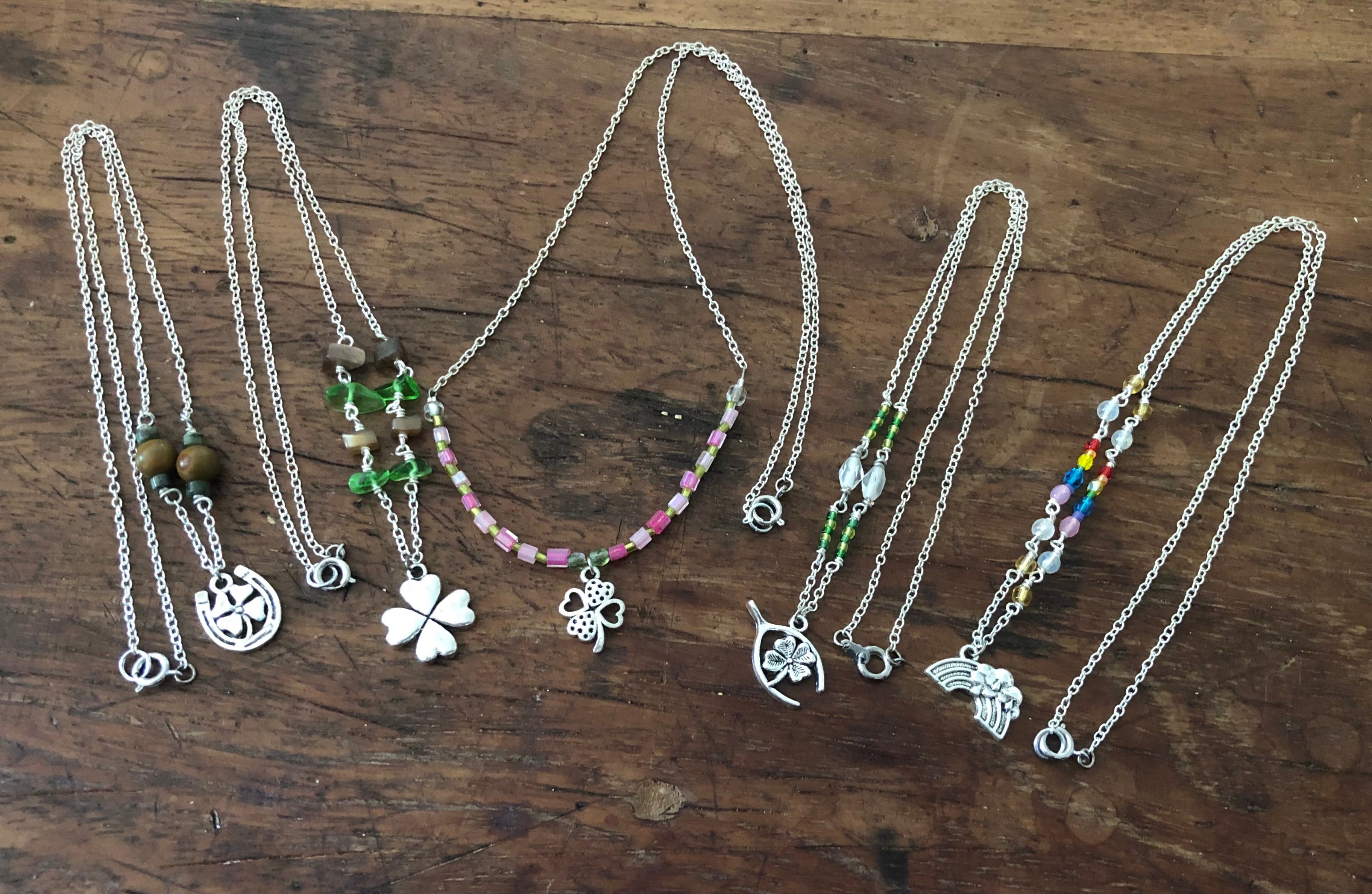 These necklaces are luck to St. Patrick's day themed. I made five different types of necklaces which are as follows,