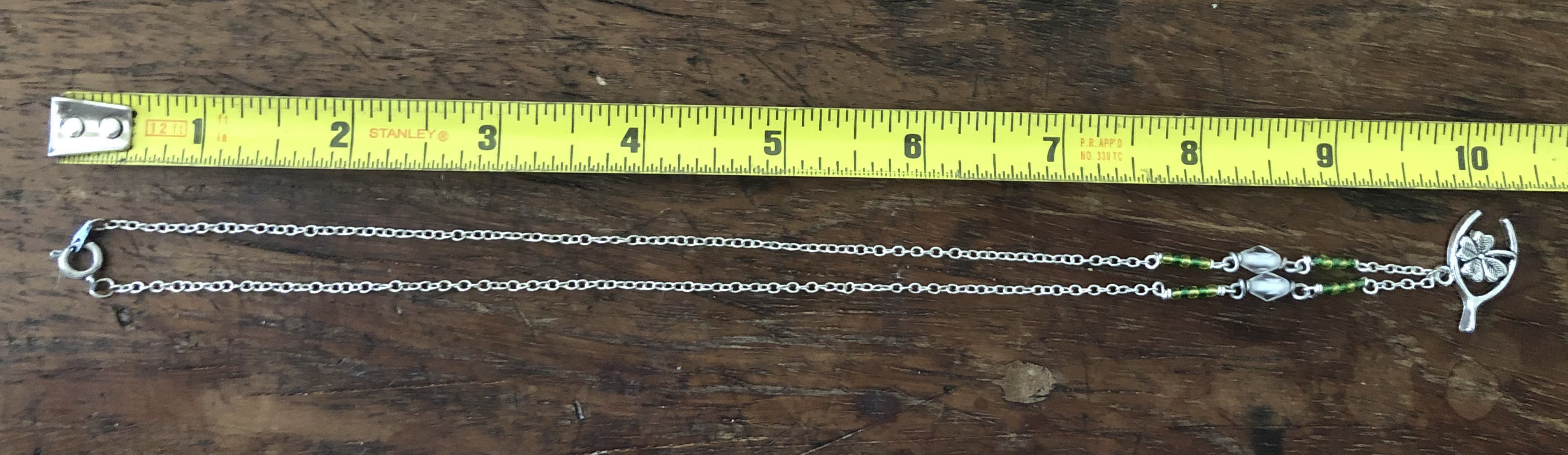 Four leaf clover within horseshoe pendant with stones wire wrapped on the chains.