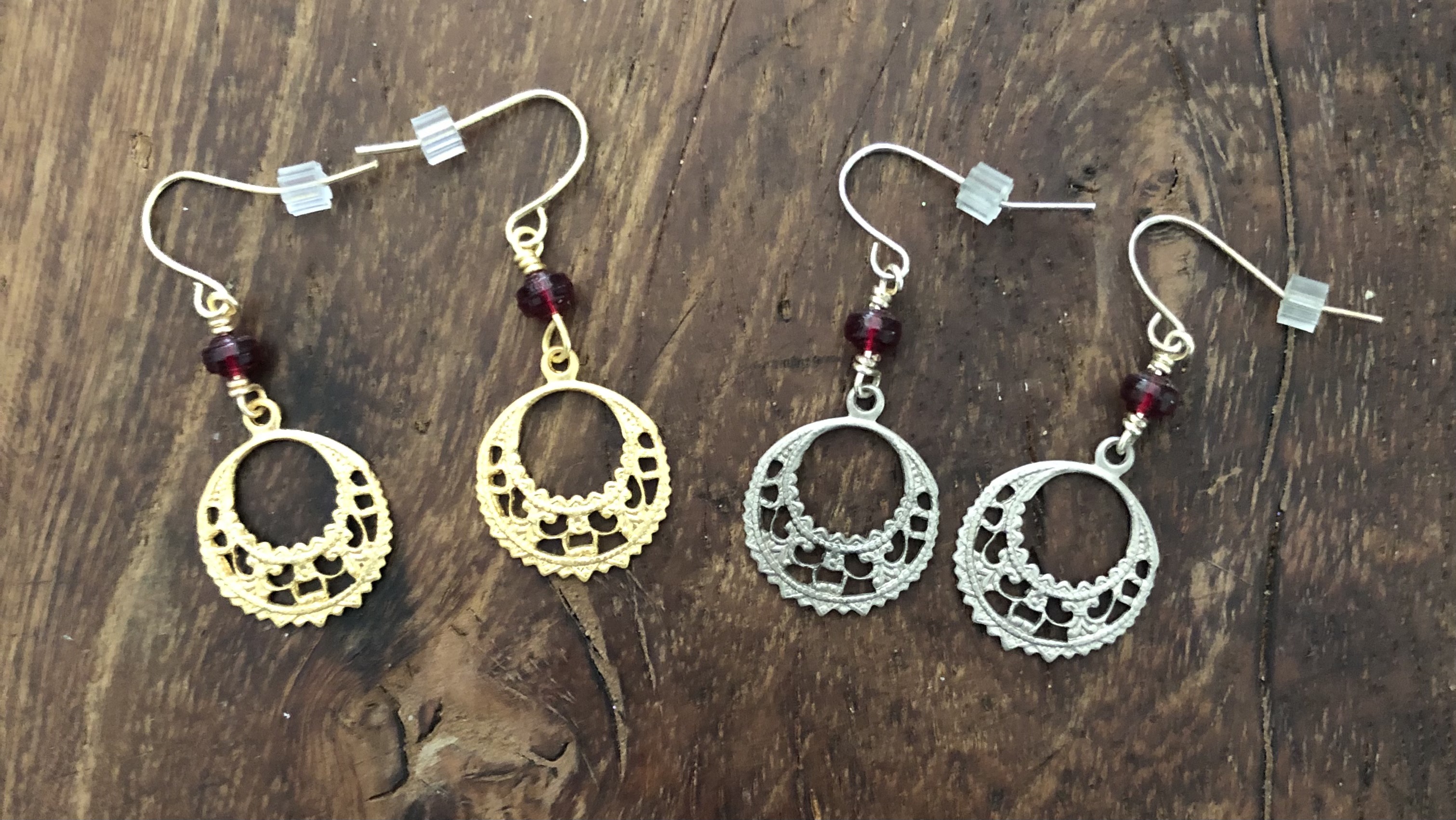 These were little metal charms I got years ago from a former lapidarist who would make a variety of stone pieces. I thought red beads would compliment the silver and gold colors.