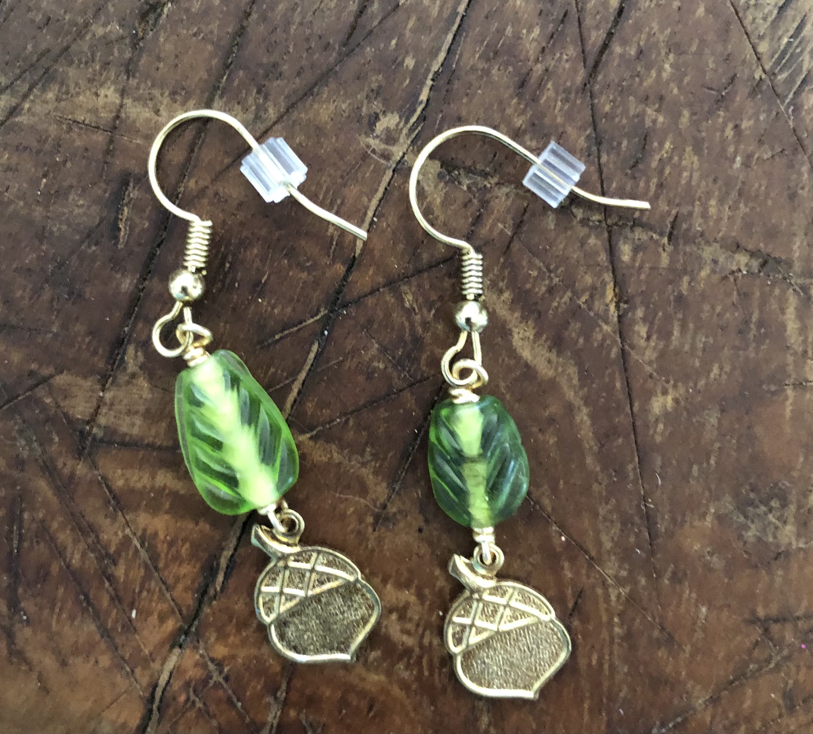 In a bag filled with different vintage autumn themed charms there were some acorn ones and I thought it would be fun to do a acorn and leaf combo. I ended up with going with some green leaf beads which may not be 100% autumn but could work for the season or even spring.