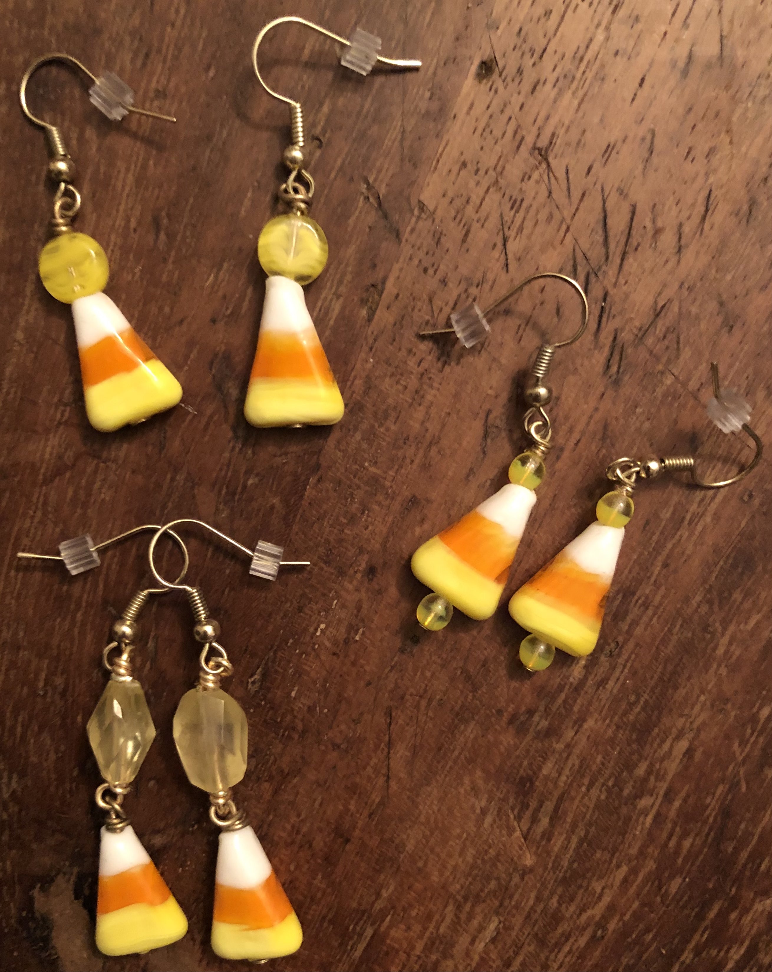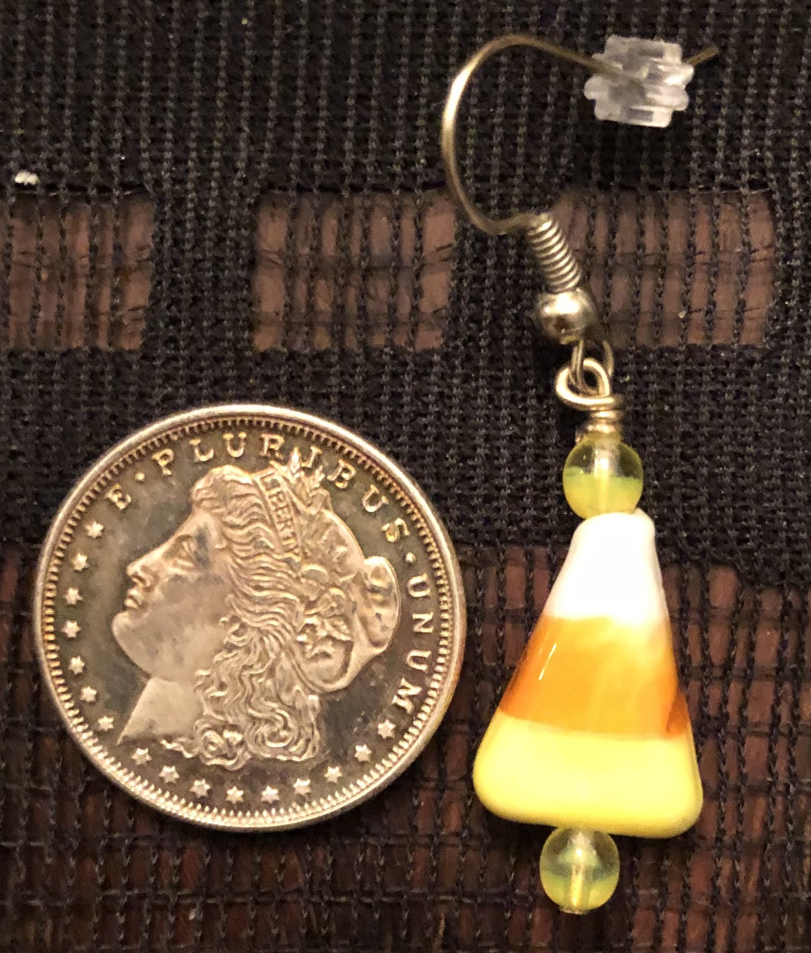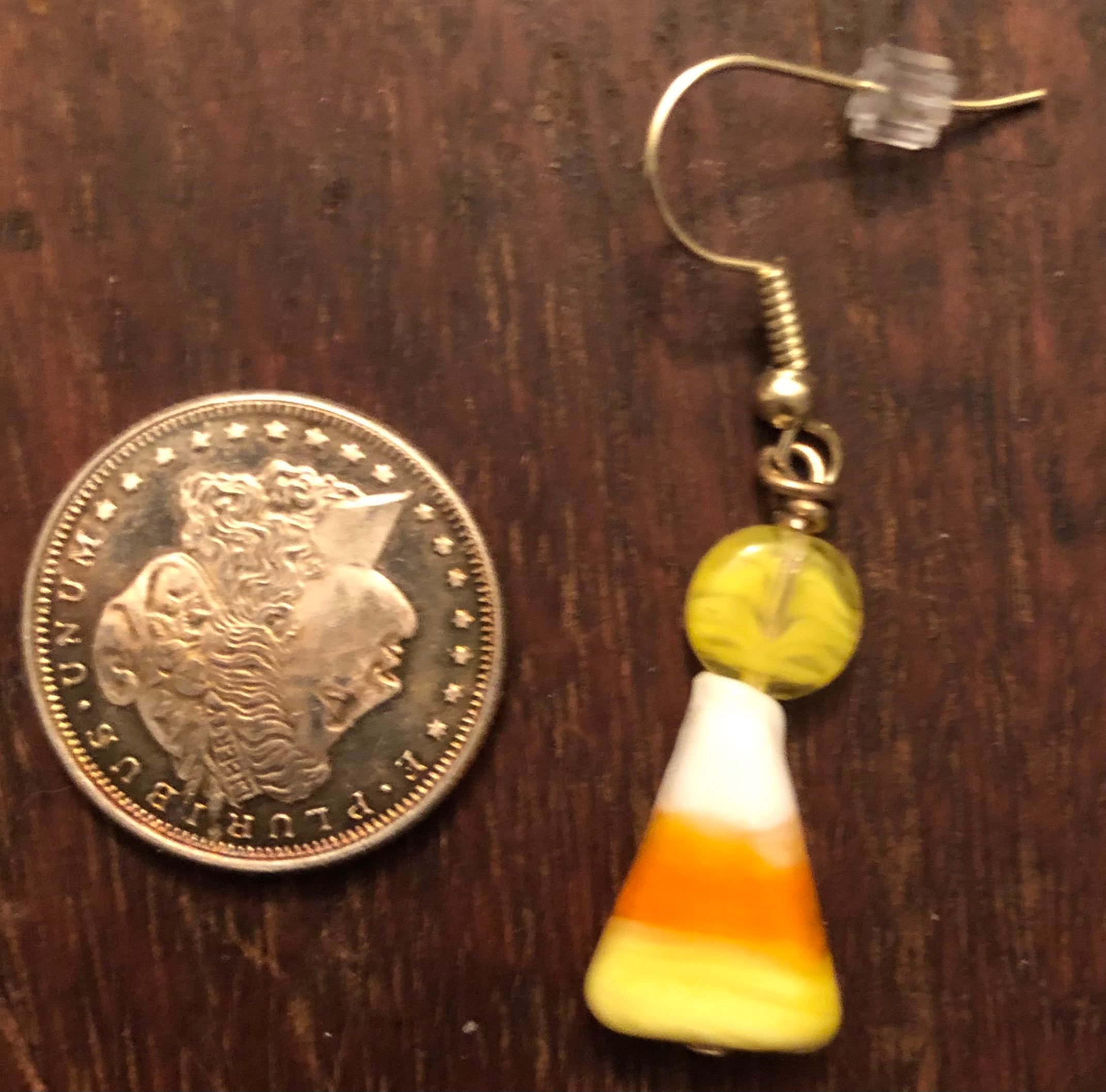 Handblown glass candycorn earrings made in different styles for various preferences.
