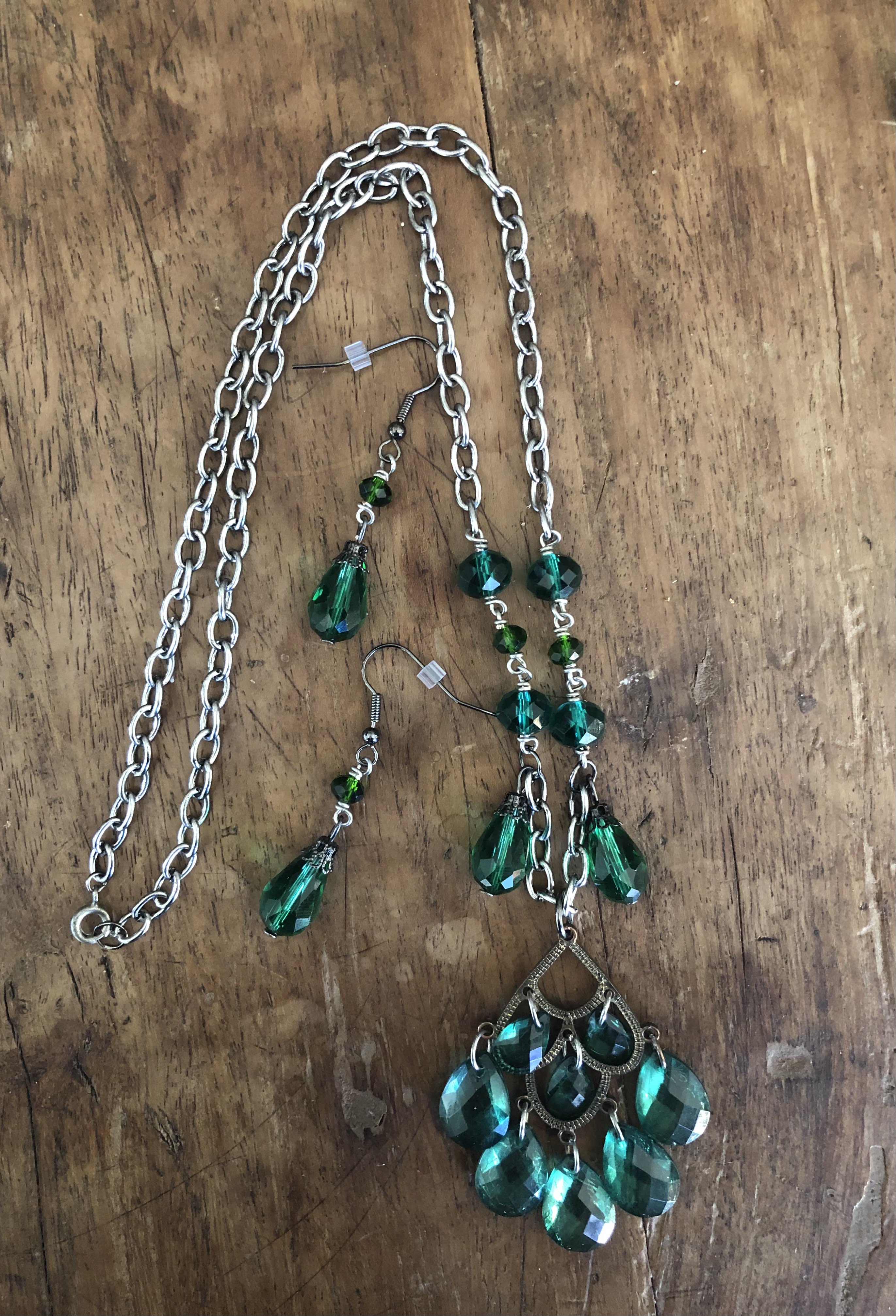 This necklace and earring set I wanted to make something more subtle Christmas vibes that one could wear during the holidays but also could be worn other times of the year. When making the piece I would think of a party to ballroom since this looks like the type of jewelry someone would wear for an event like such.