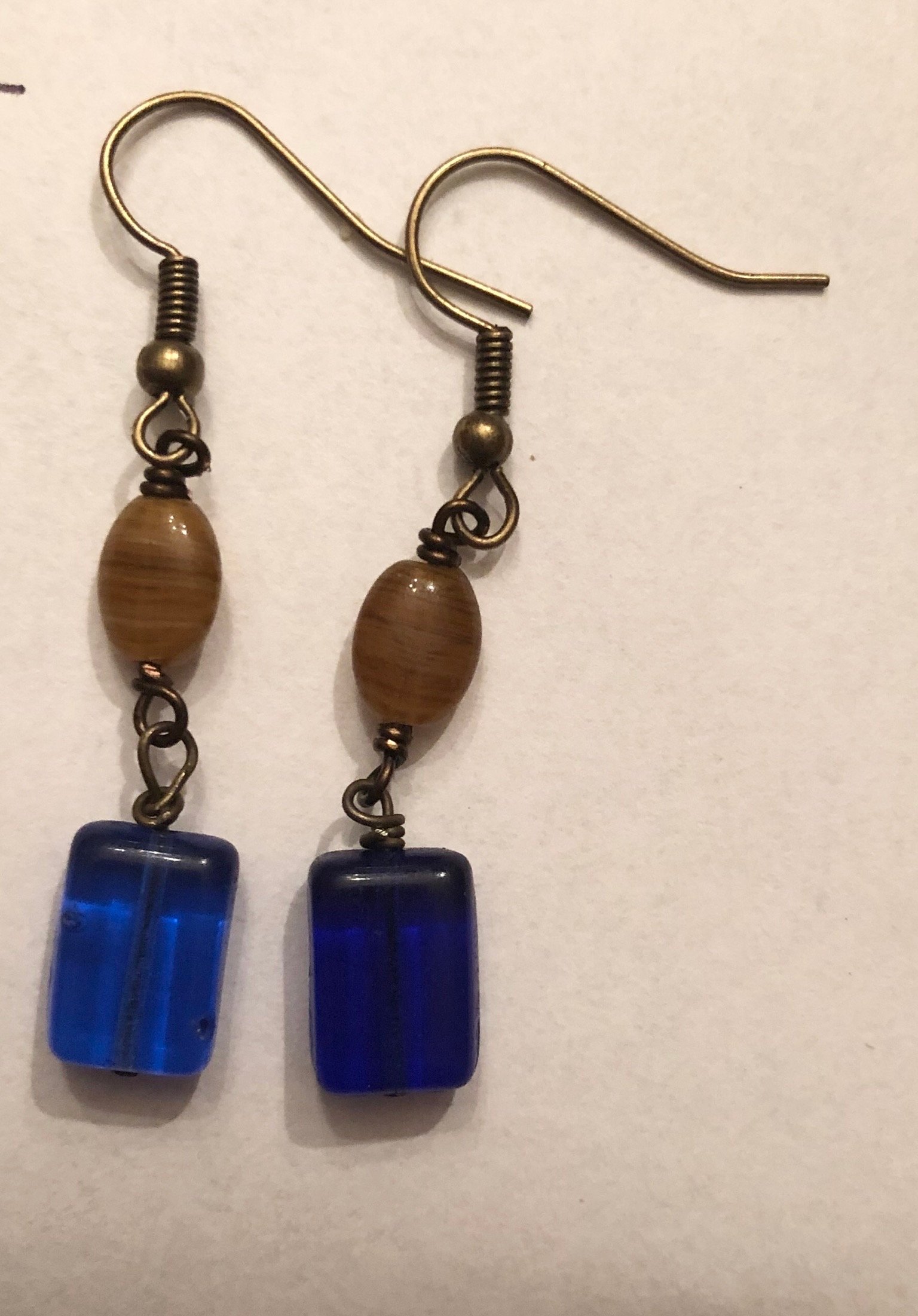 When making these earrings using brown and dark blue beads it reminded me of being in a cafe while it rains.