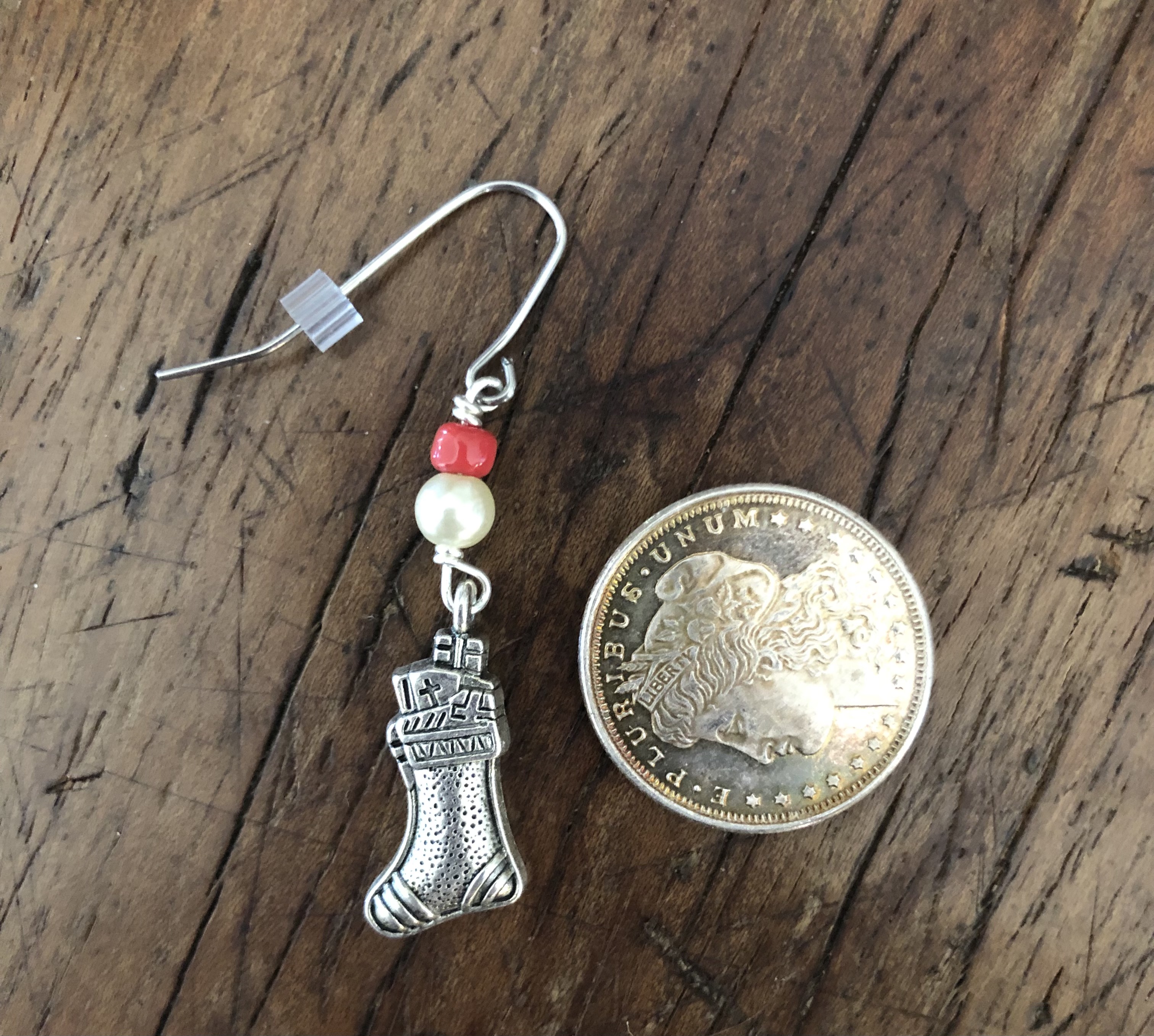 Some years ago I made a variety of bracelet earring sets based themed around Christmas. This one I focused on Christmas stockings mainly focusing on colors such as white, green, and red.