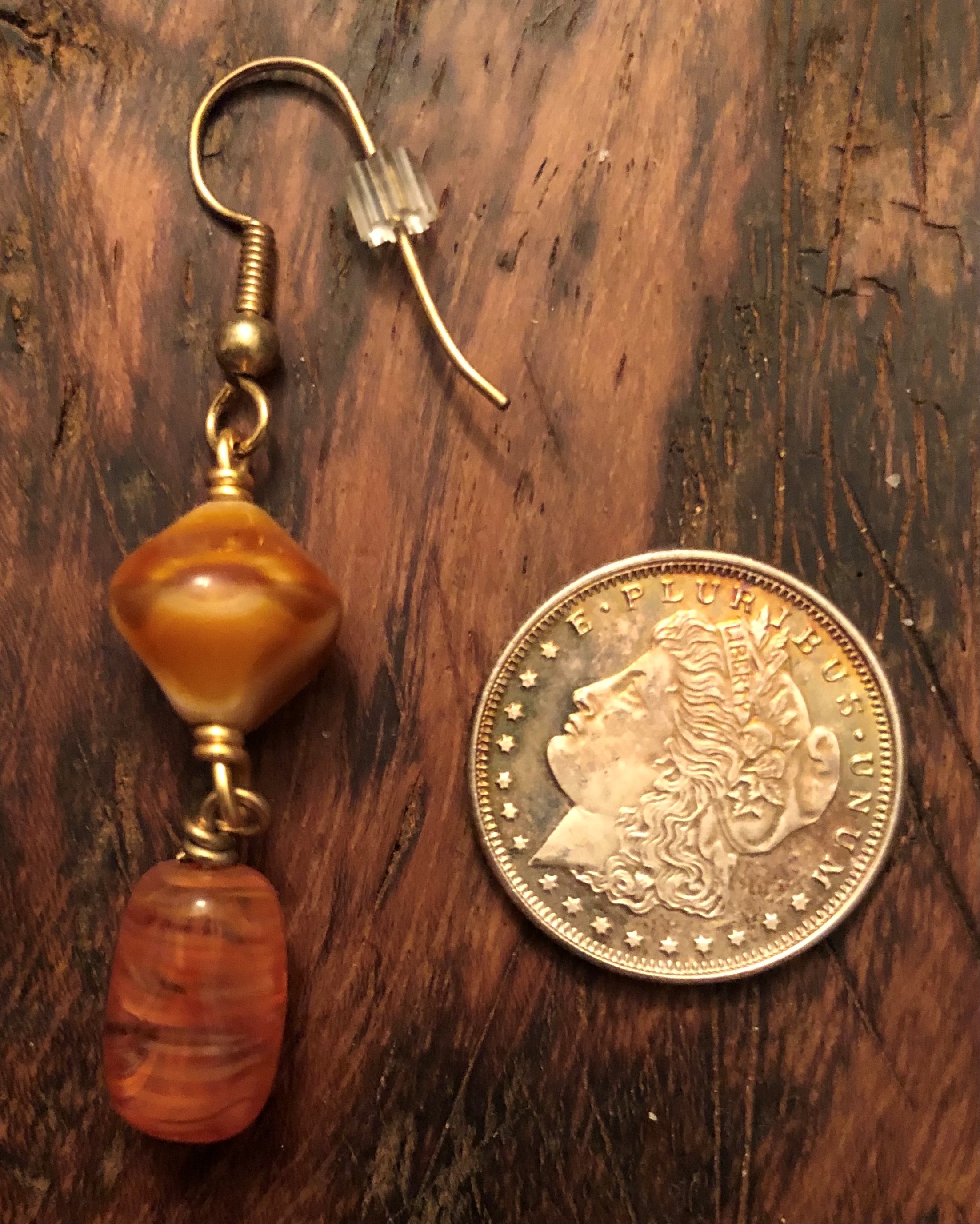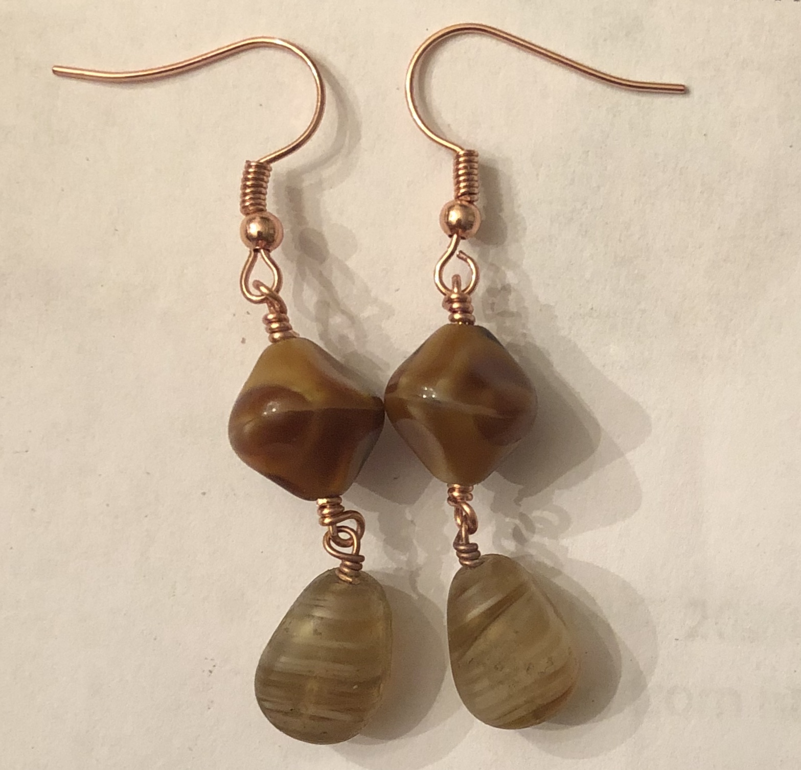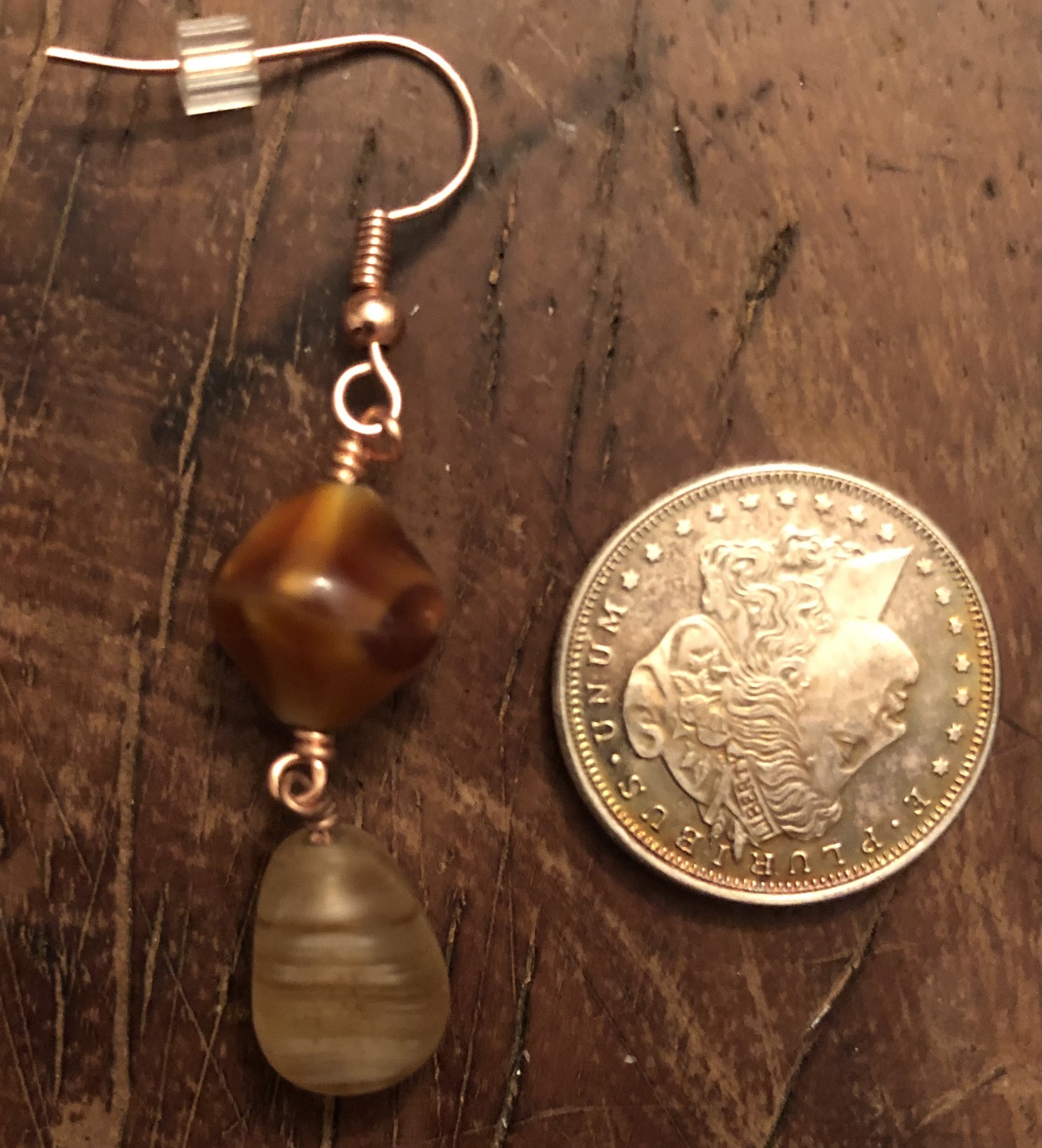 When making these earrings I was working with the various brown beads I had and when it came together it all reminded me of coffee. I made two different versions where one is a bottom bead that is dull light brown while the other one is brown orange.