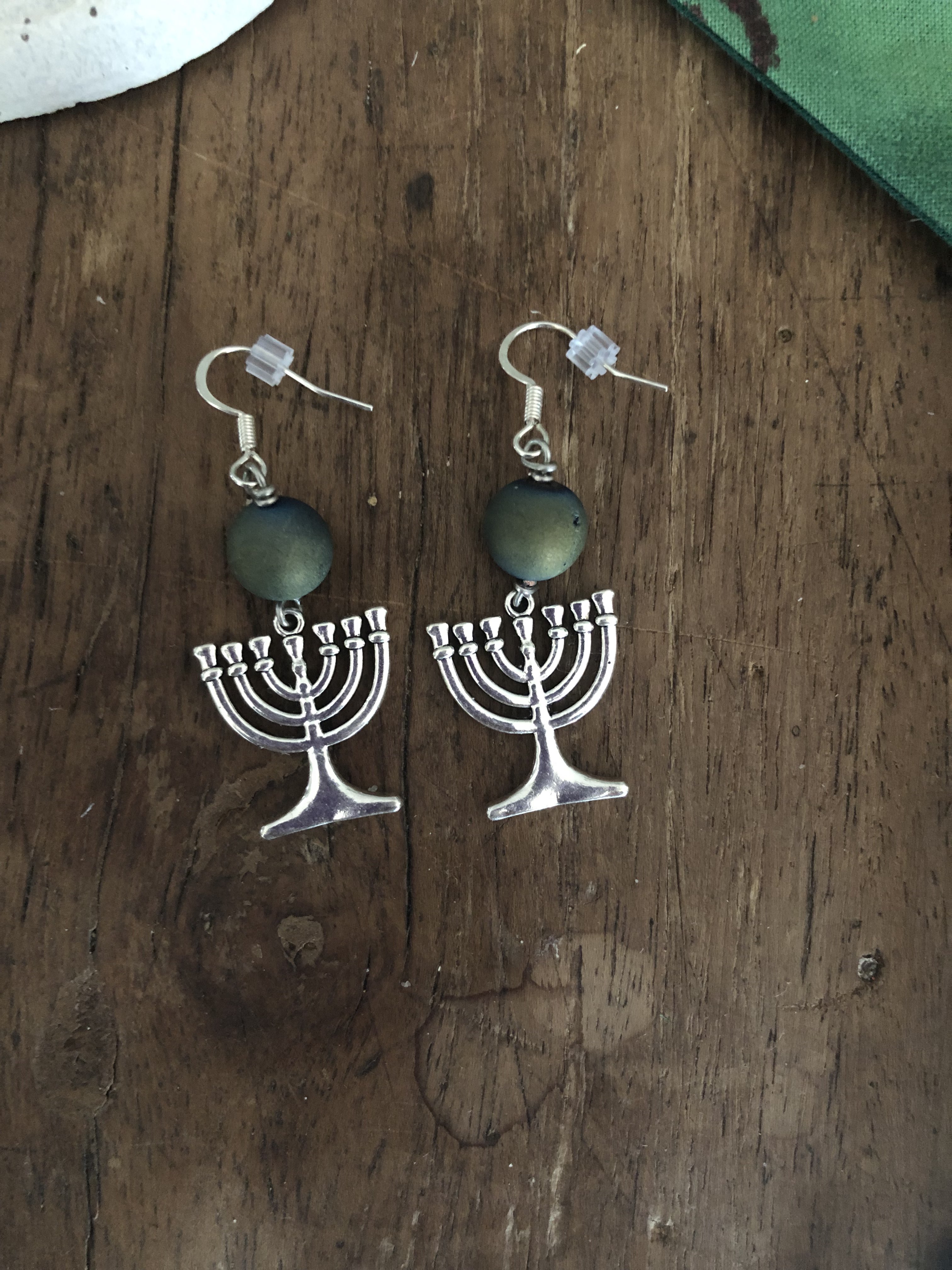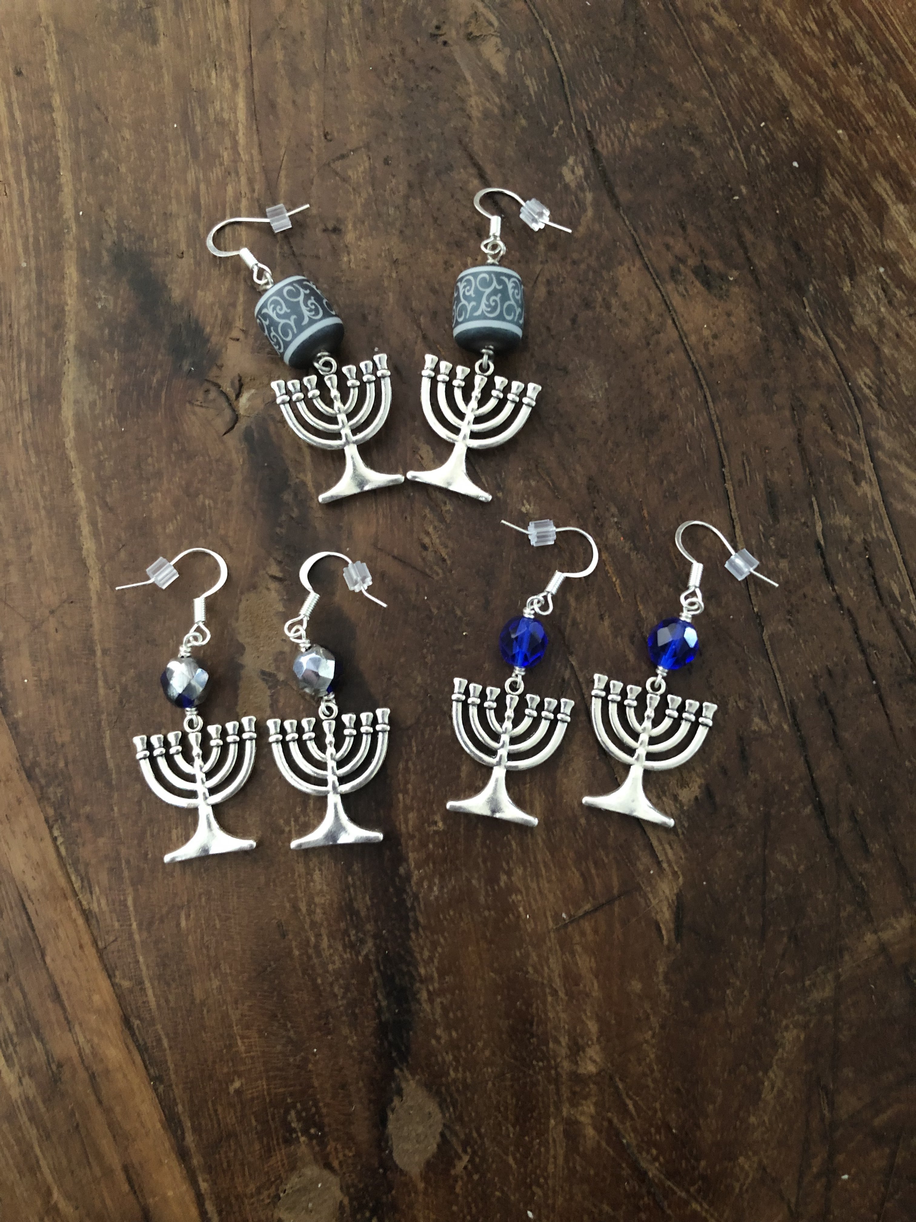 12/9/2022: The Blue bead with silver patterns menorah earrings have been sold.