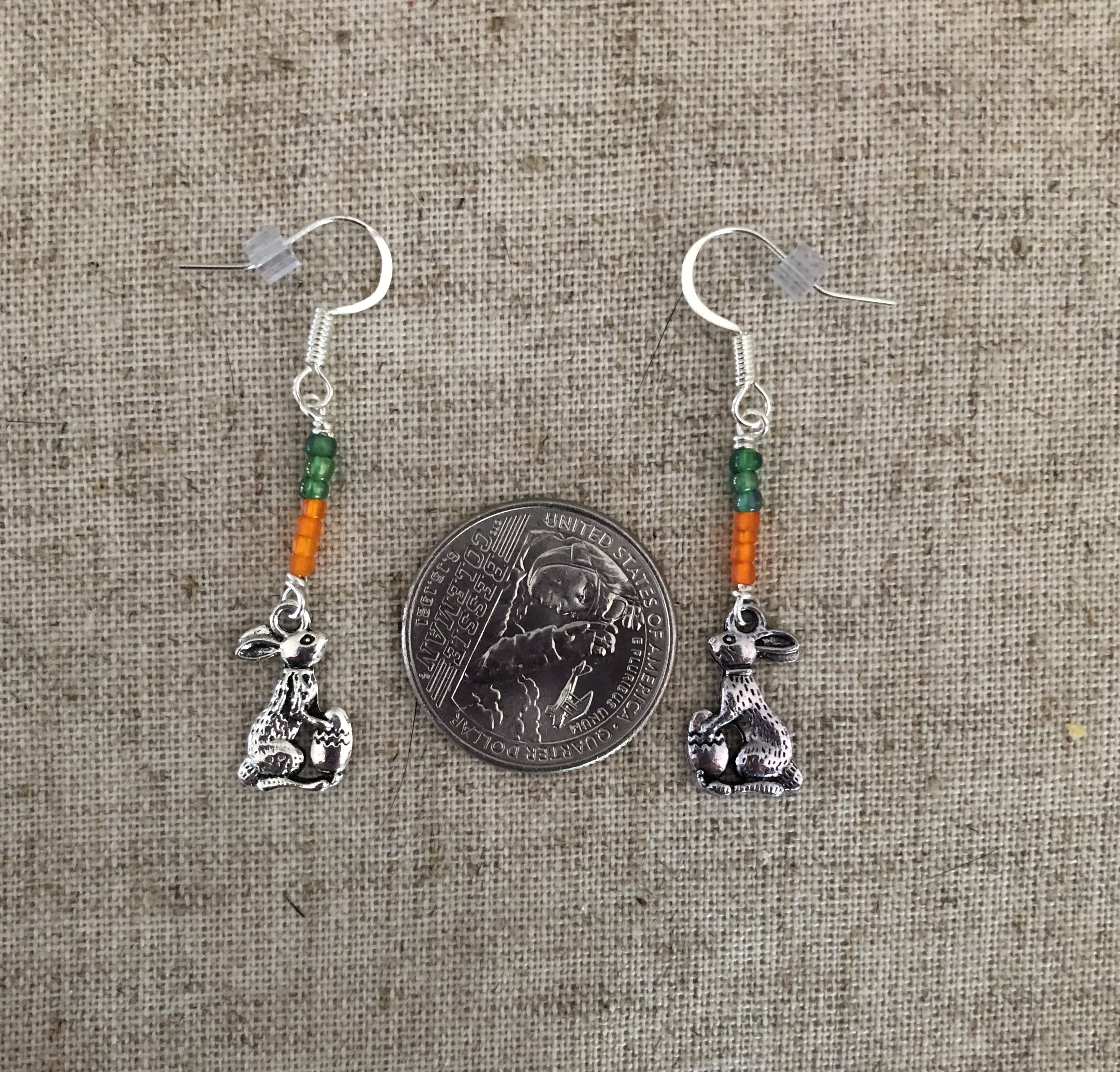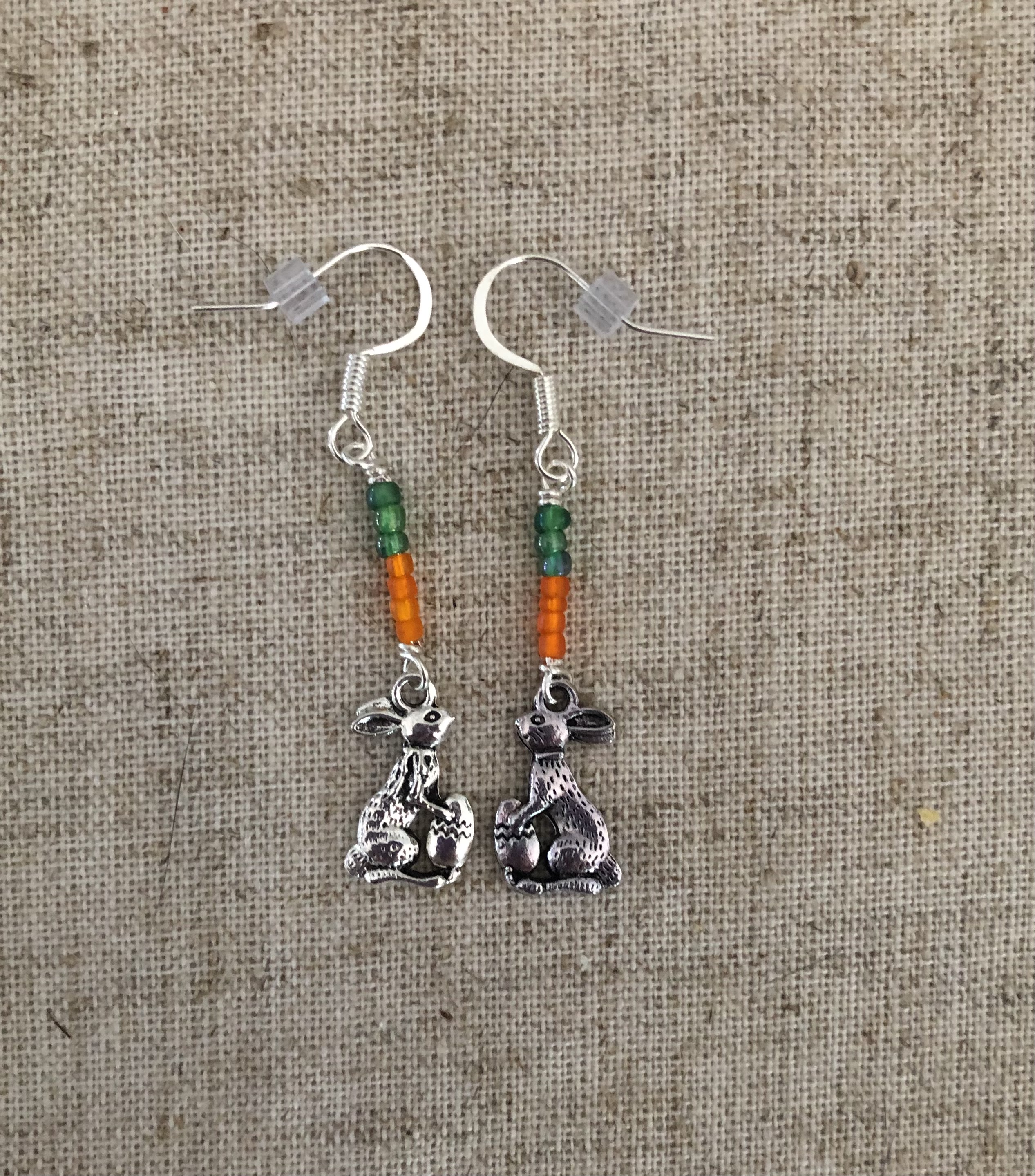 Little Easter rabbit charms wire wrapped with tiny orange and green beads mimicking carrots.