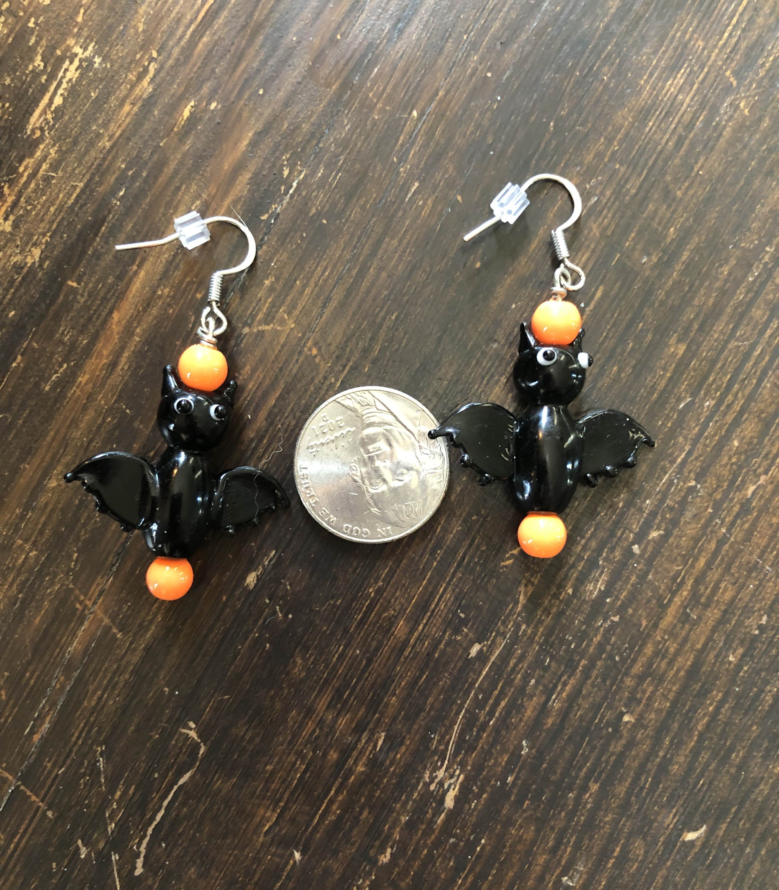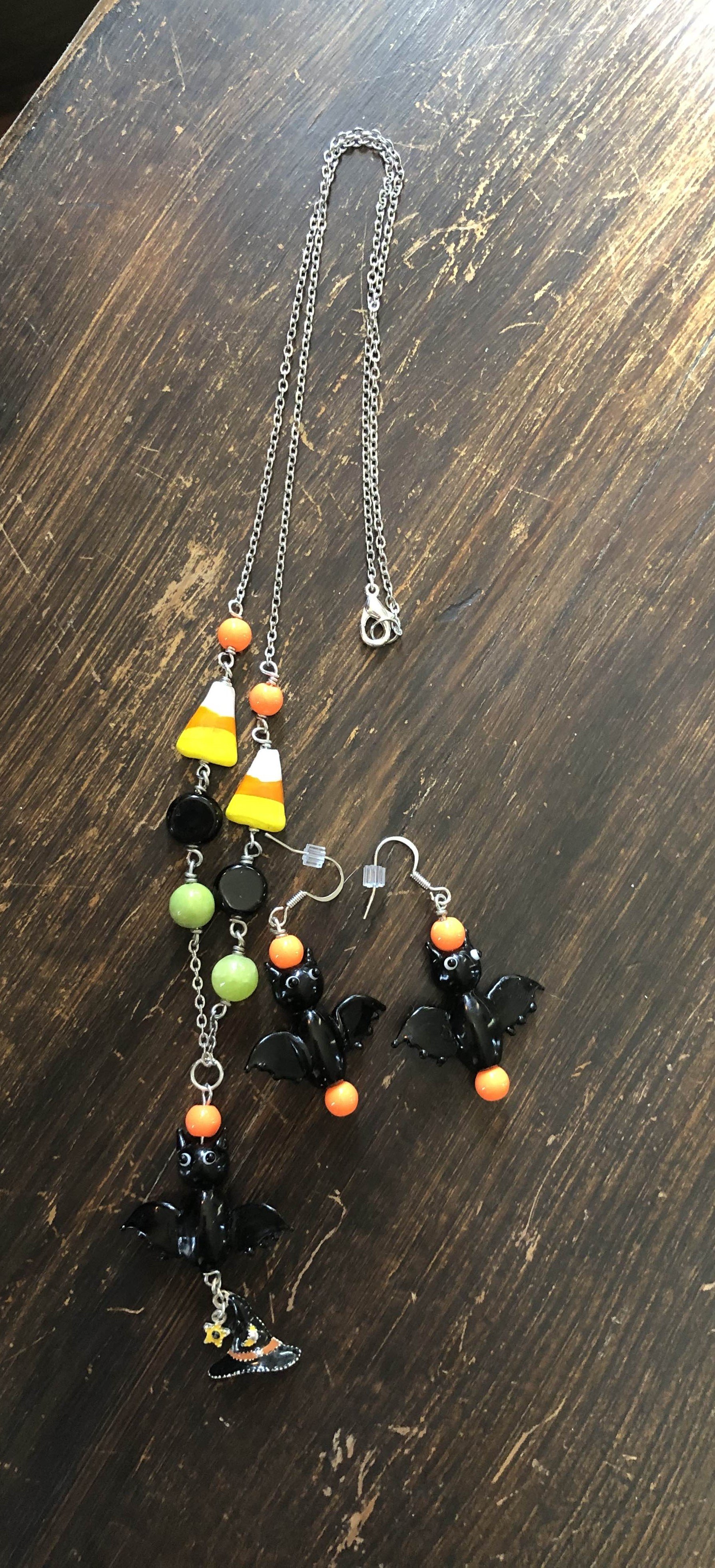 This necklace and earring set I used handblown glass bat beads as the main vocal point.