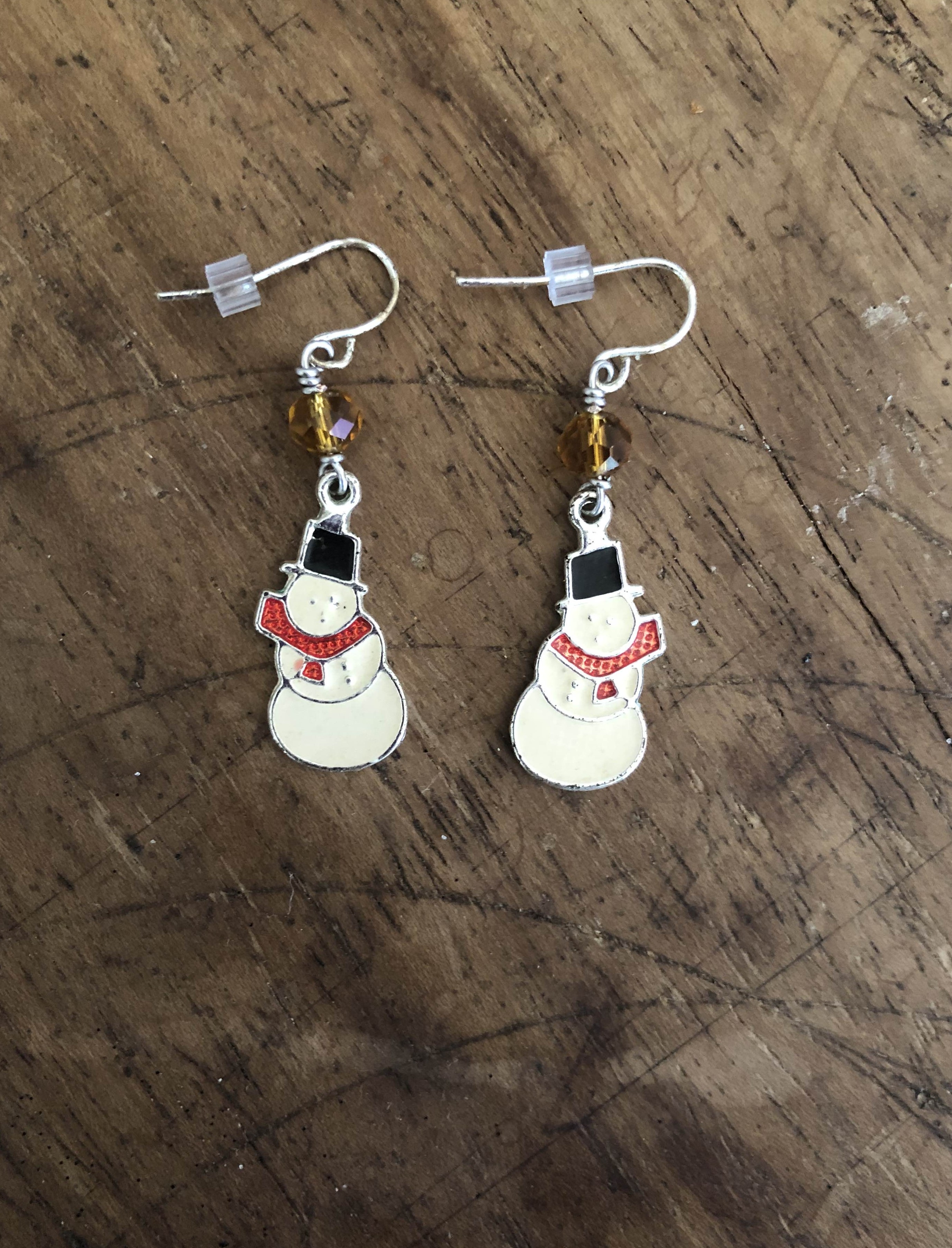 These are vintage snowmen earrings that remade with light brown faceted glass beads. I don't fully remember where I found the original earrings but I might have gotten it in a grab bag.